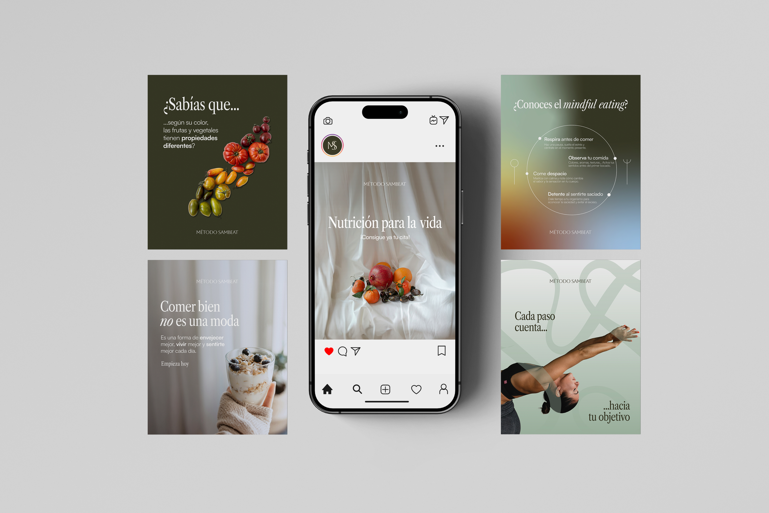 Método Sambeat is a nutrition clinic that has been operating in Madrid for several years. The rebranding was not just about updating the visual identity, but about aligning the image with the philosophy behind the method: nutrition as a long-term lifestyle, not a temporary solution.