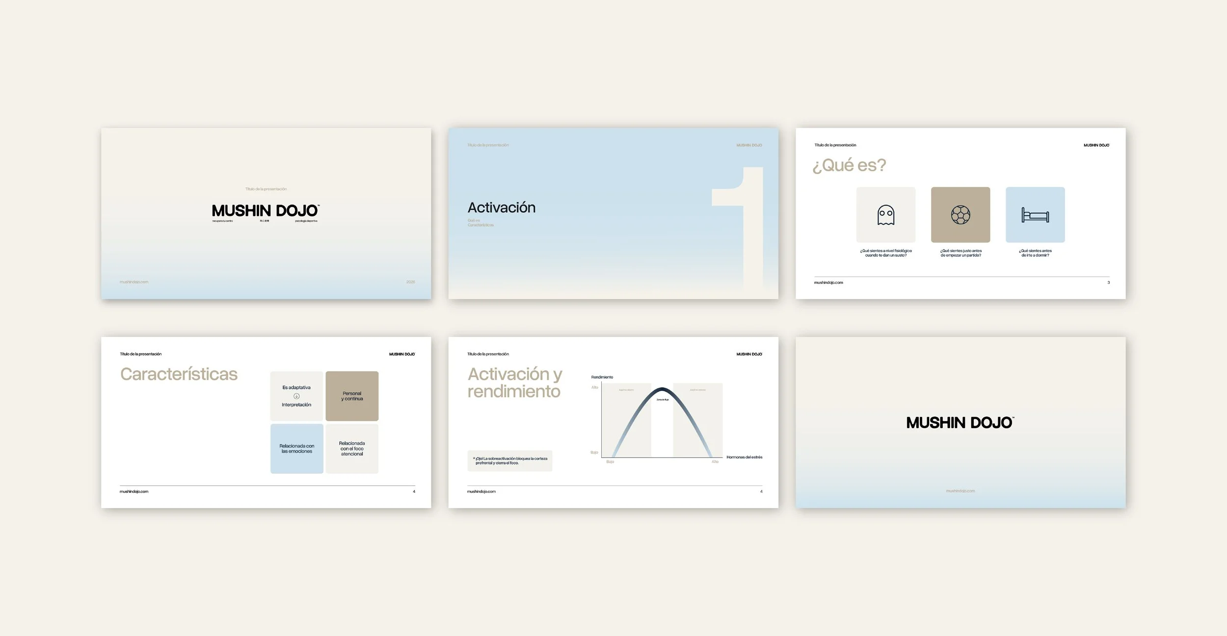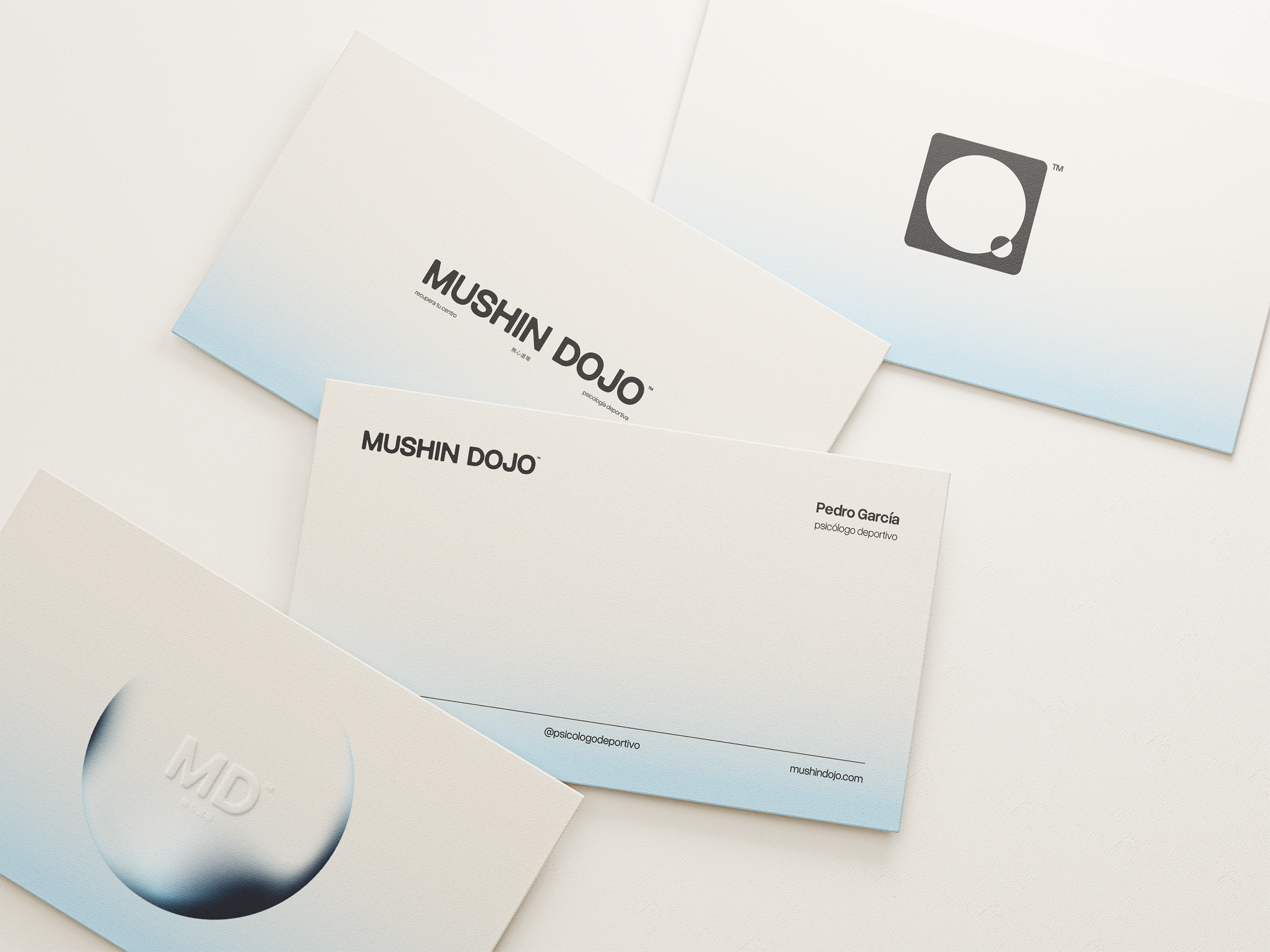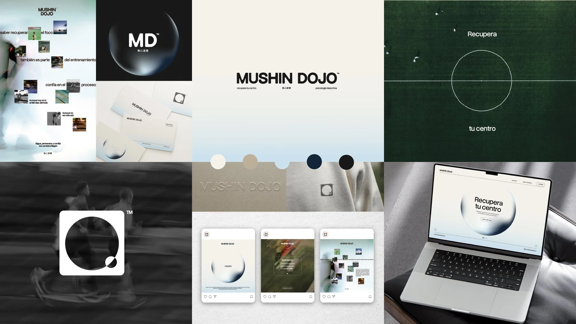 Mushin Dojo is a sports psychology clinic based in Valencia, inspired by the Japanese concept of mushin — a state of mind free from unnecessary noise. The brand is built around the idea of “returning to your center”: in martial arts, every movement begins from the hara, the body’s core, and symbolically from the center of the mind. Mushin Dojo was conceived as that place to come back to when everything feels overwhelming — a space to pause, regain balance, and reconnect with what truly sustains performance.